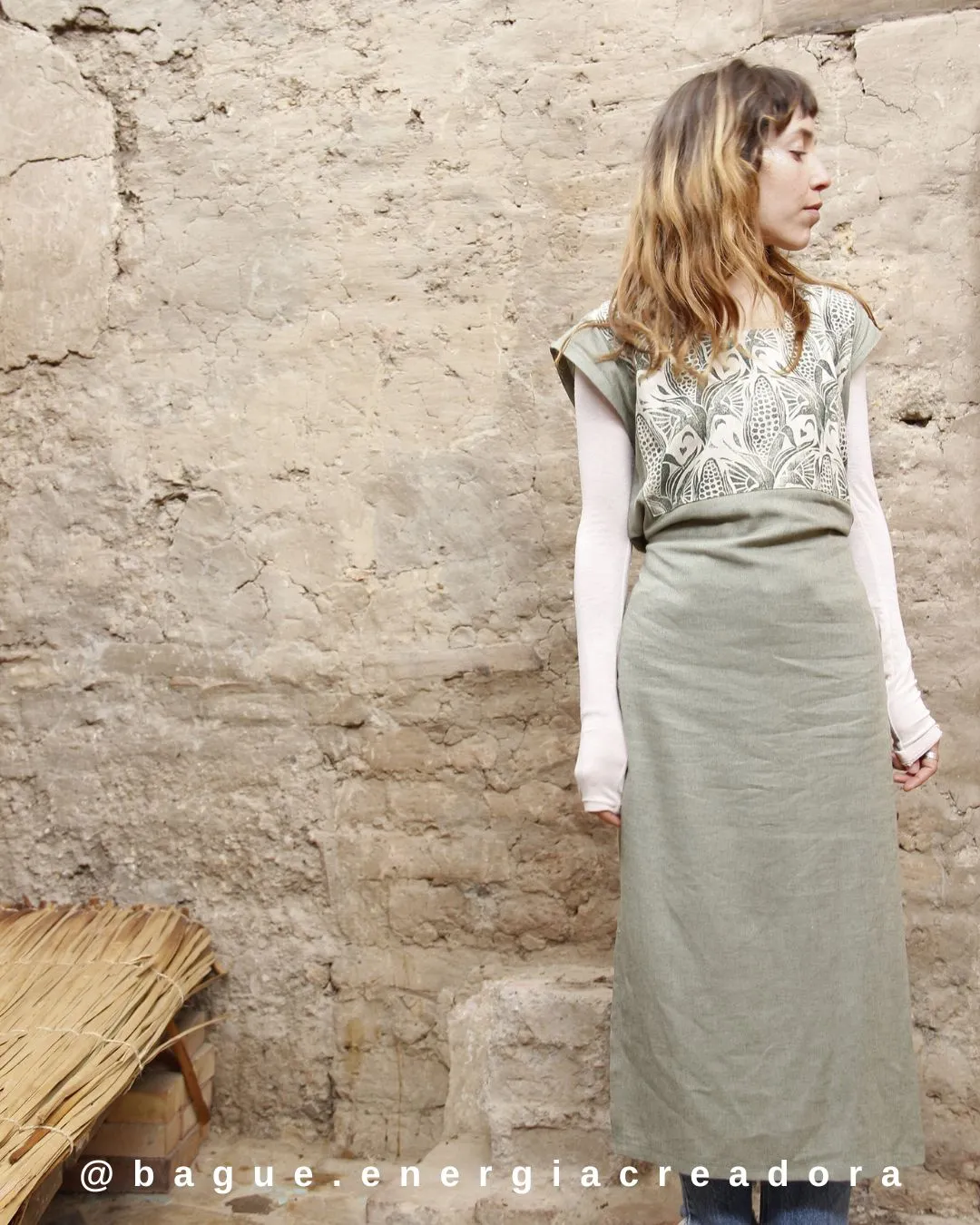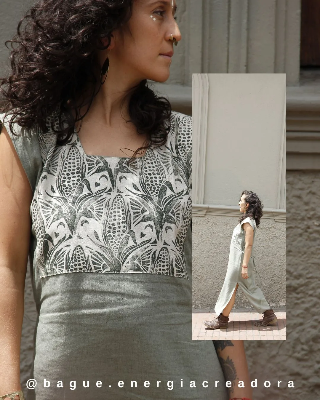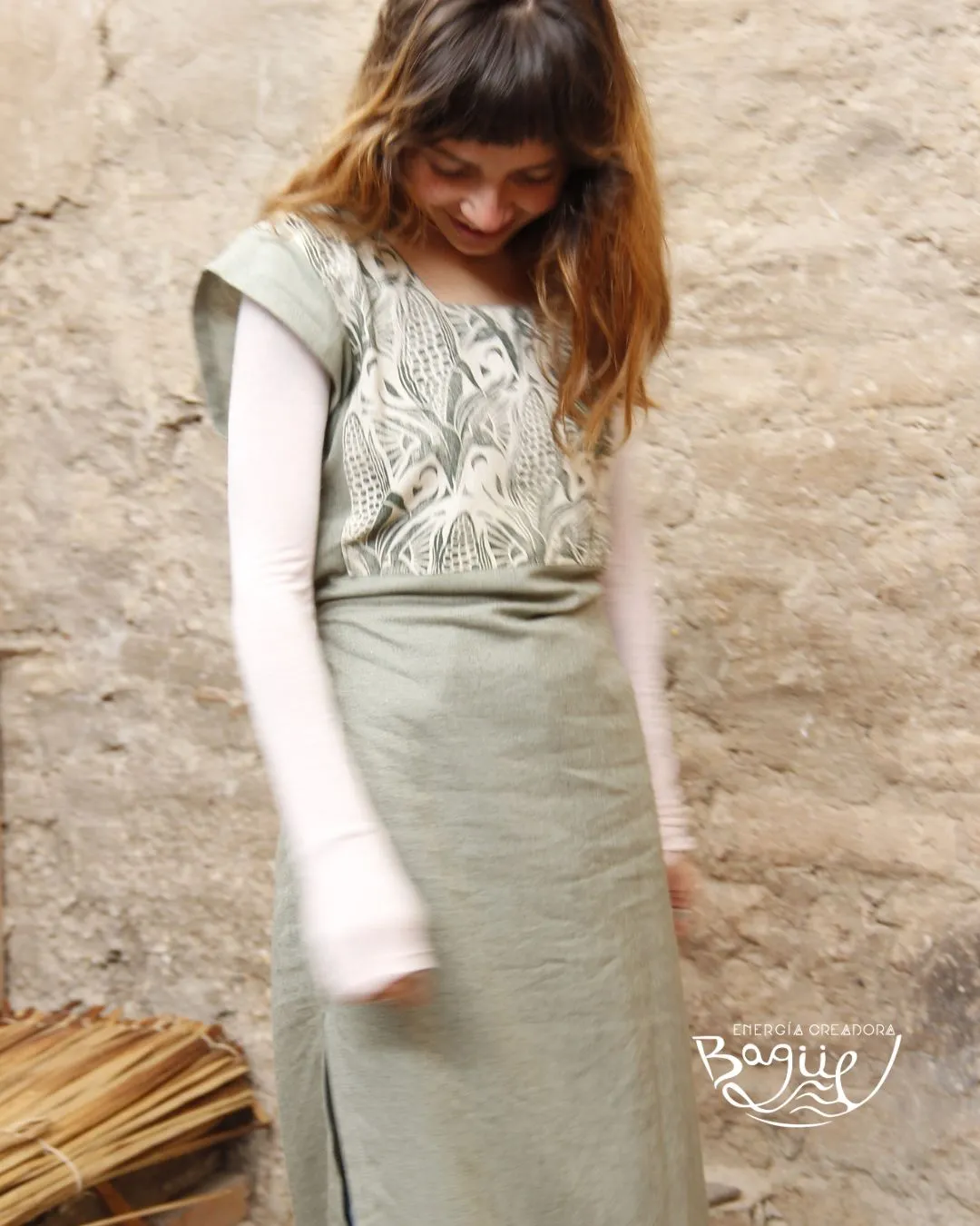 Personalización: Honramos la diversidad corporal. Cada pieza es hecha a tu talla y estatura, con opción a modificar el largo y el tejido simbólico a través de nuestras propuestas co-creadoras.