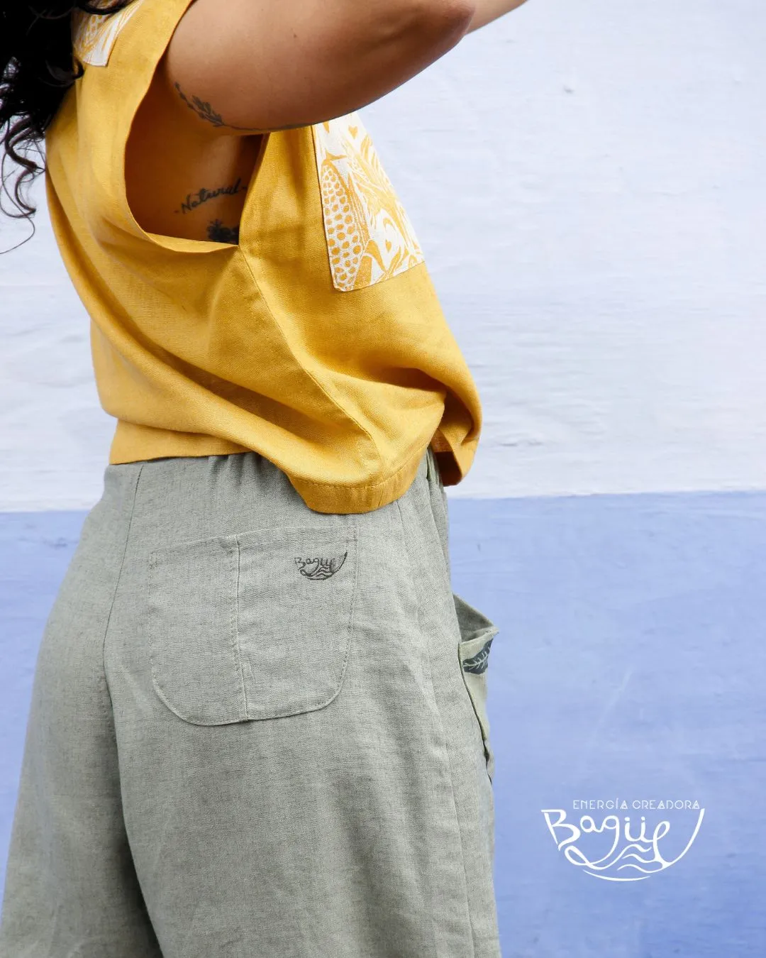 ¡Un pantalón versátil, sostenible y artesanal que irradia intención y estilo!