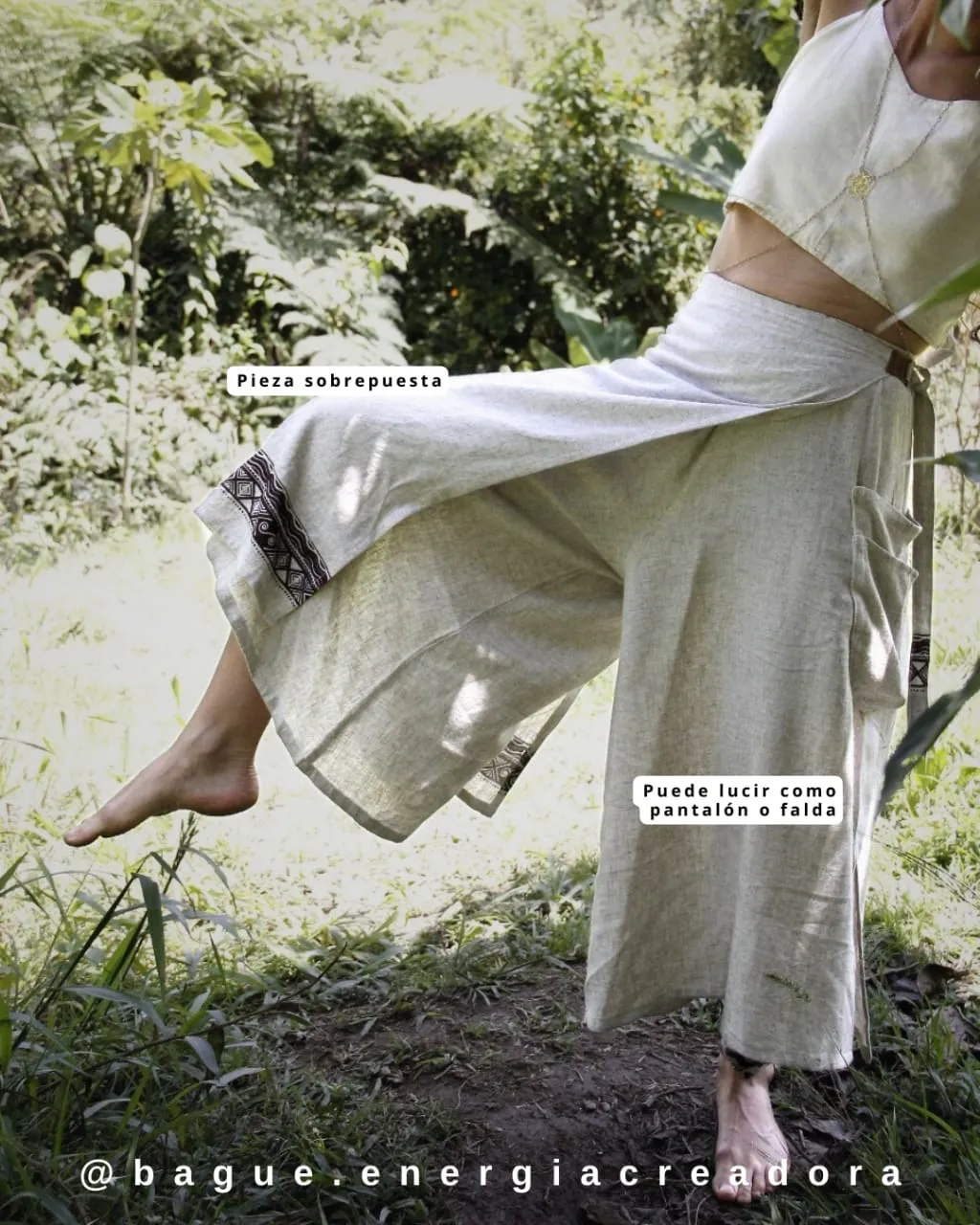 Descubre la Pieza Multiusos Hyca / Piedra, una prenda de magia y versatilidad compuesta por dos piezas (pantalón y sobrepuesto). Te permite lucir un look de falda pantalón o pantalón tipo culote, brindándote diversas opciones de estilo.