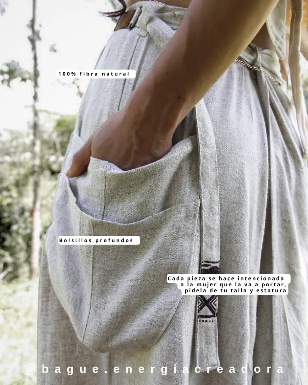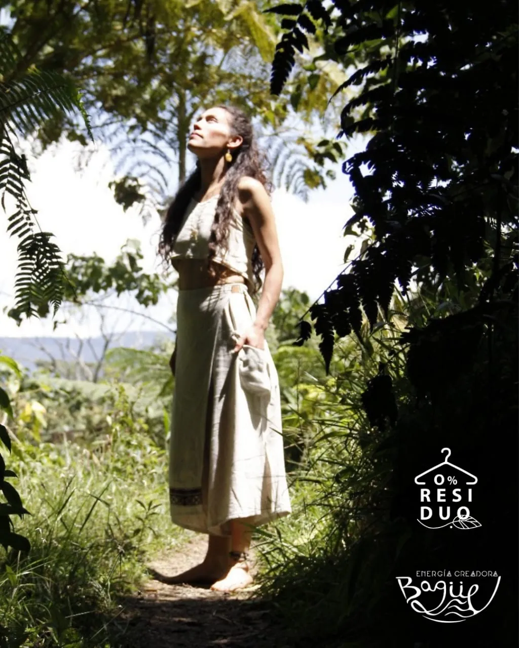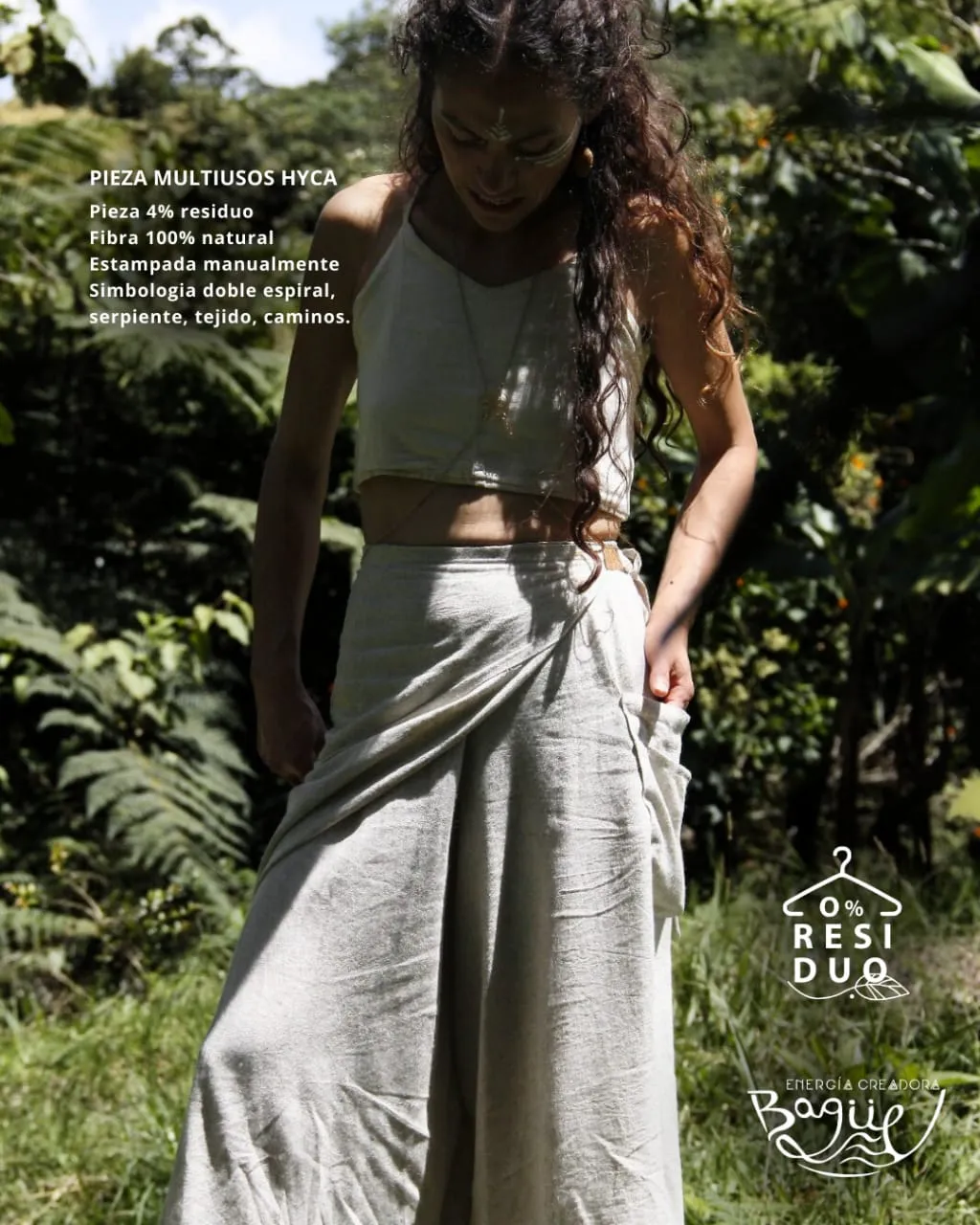 Diseño Consciente: Creada bajo el principio de Cero Residuos (0 RESIDUO), minimizando el impacto de desecho textil al 3% en su producción. Está elaborada con fibra 100% natural.