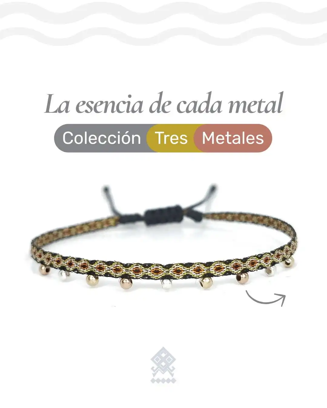Descubre La esencia de cada metal con esta exquisita pulsera artesanal, parte de nuestra exclusiva Colección Tres Metales. Tejida a mano con precisión, la pulsera presenta un vibrante patrón de ondas en hilo negro, dorado y toques rojos. Su verdadero encanto reside en los pequeños balines metálicos que adornan la parte inferior, que alternan entre tonos de oro, plata y cobre/oro rosado, creando un efecto visual rico y lujoso. Su cierre de macramé deslizable en hilo negro garantiza un ajuste perfecto y cómodo. Esta joya es perfecta para quienes desean un accesorio versátil que combine con todas sus otras piezas de metal. Adquiere esta pulsera única y luce la calidad, el arte y el valor inigualable de una creación genuinamente hecha a mano.