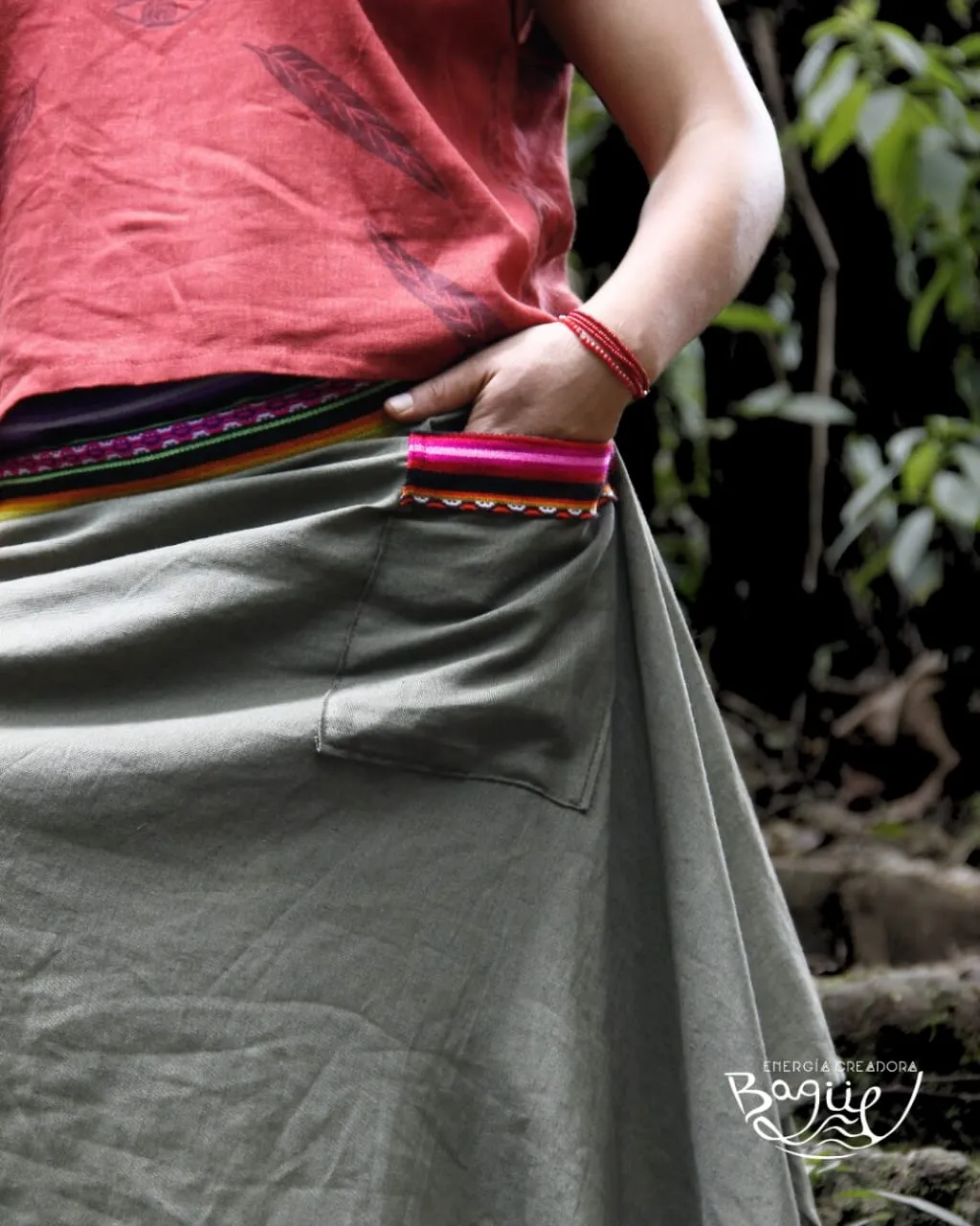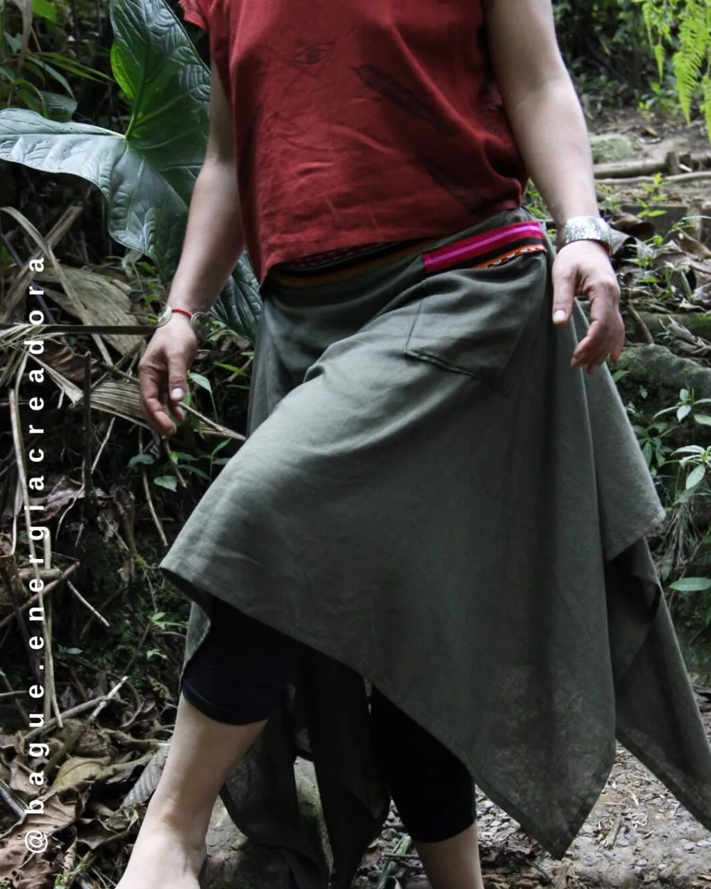 Diseño Funcional: Incluye Chumbe incorporado y nuestro exclusivo bolsillo interno #yosoymedicinadeamor, perfecto para portar cuarzos, plantas o tus medicinas personales.