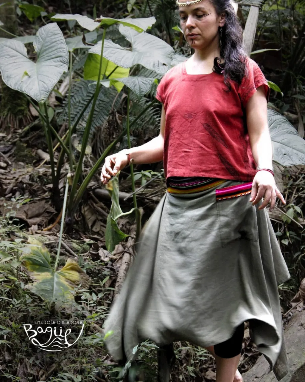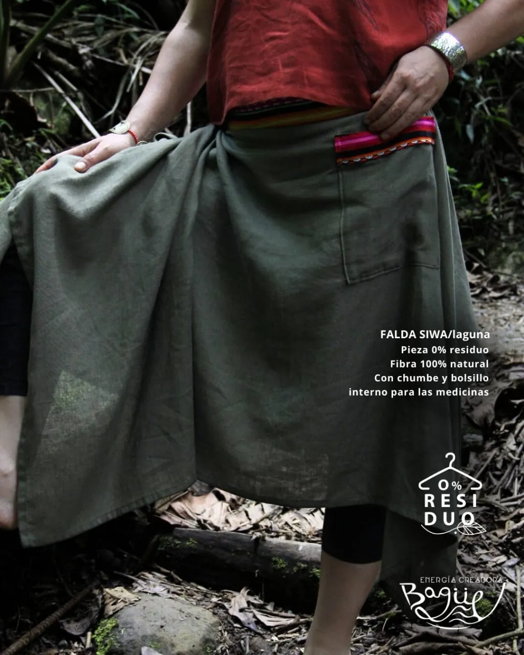 Descubre la Falda Siwa Wany / Laguna, una pieza cómoda y poderosa diseñada para acompañar tu ceremonia diaria.