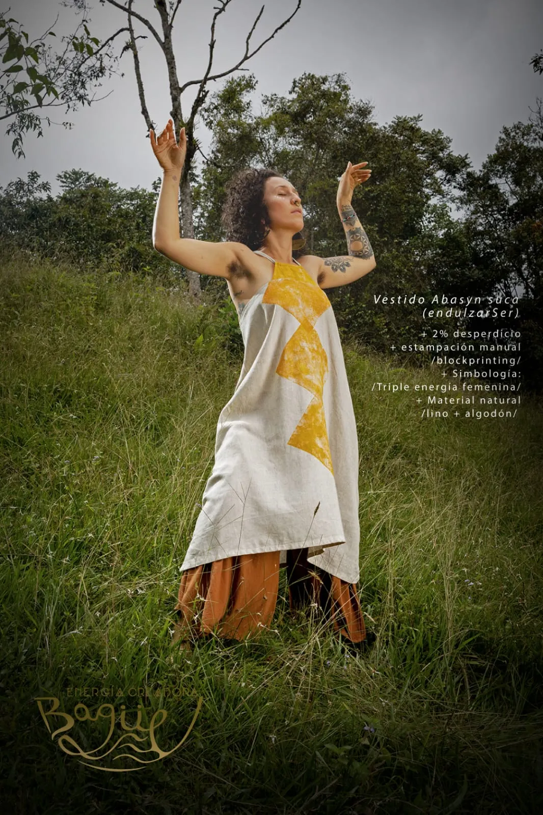 Descubre el Vestido Abasyn Suca (EndulzarSer), una pieza cómoda y significativa diseñada para honrar tu esencia. Su simbología evoca el triple aspecto femenino y te invita a «Endulzar el Ser».