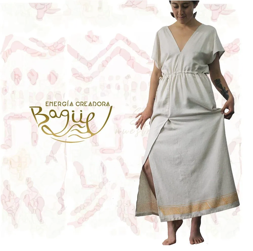 Diseño Consciente: Este vestido es 0 desperdicio, lo que significa que prácticamente no genera residuos textiles (solo 1% de residuo), garantizando un mínimo impacto ambiental. Está elaborado con material 100% natural (lino + algodón).