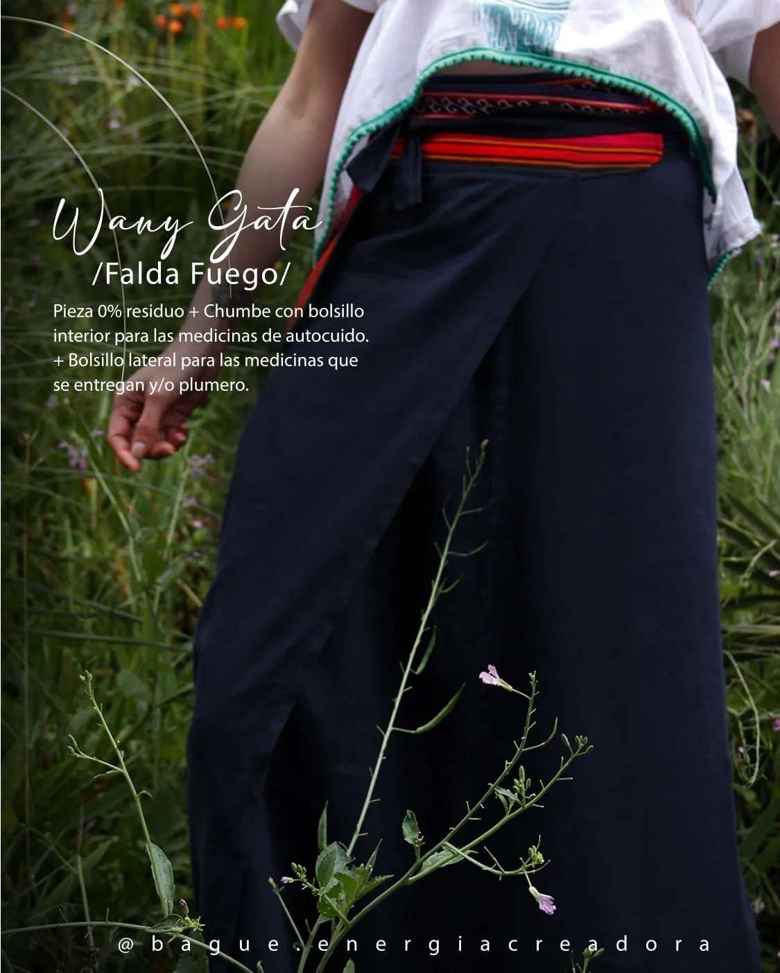 Descubre la Falda Wany Gata / Falda Fuego, una pieza ritual de acompañamiento diseñada para el trabajo de auto-reconocimiento de tu medicina, el enraizamiento con tus dones y el darnos en servicio.